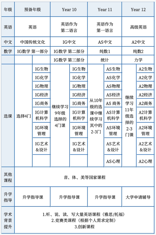 1.5年IGCSE课程+2年A Level课程