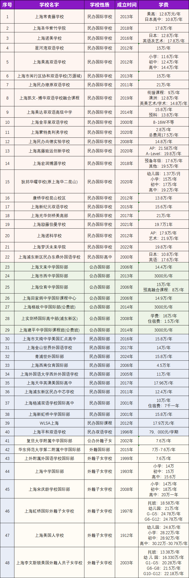 2024年-2025年,上海总共有近50所国际学校开设AP课程,包括公办学校的国际部、民办国际学校以及外籍人员子女学校,其中民办学校占据了相当大的比例。