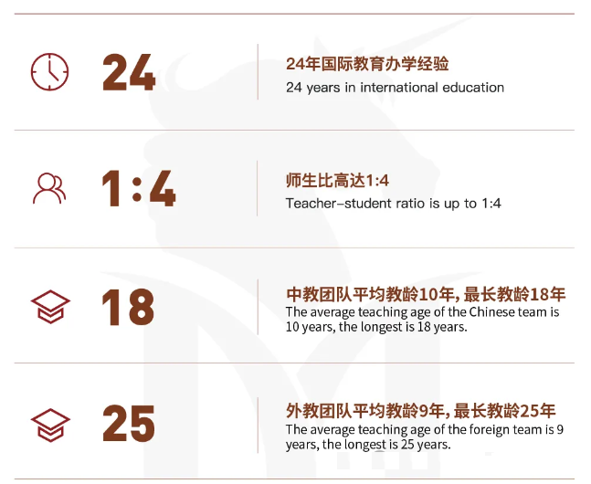 成熟的育人理念和强大的师资力量是青岛墨尔文中学保持非凡成绩的有力保障,经过十余年的教学实践与团队发展,学校形成了一支教学严谨、实力雄厚、经验丰富的师资队伍,从师生配比到教学成果,远超其他同类高校。