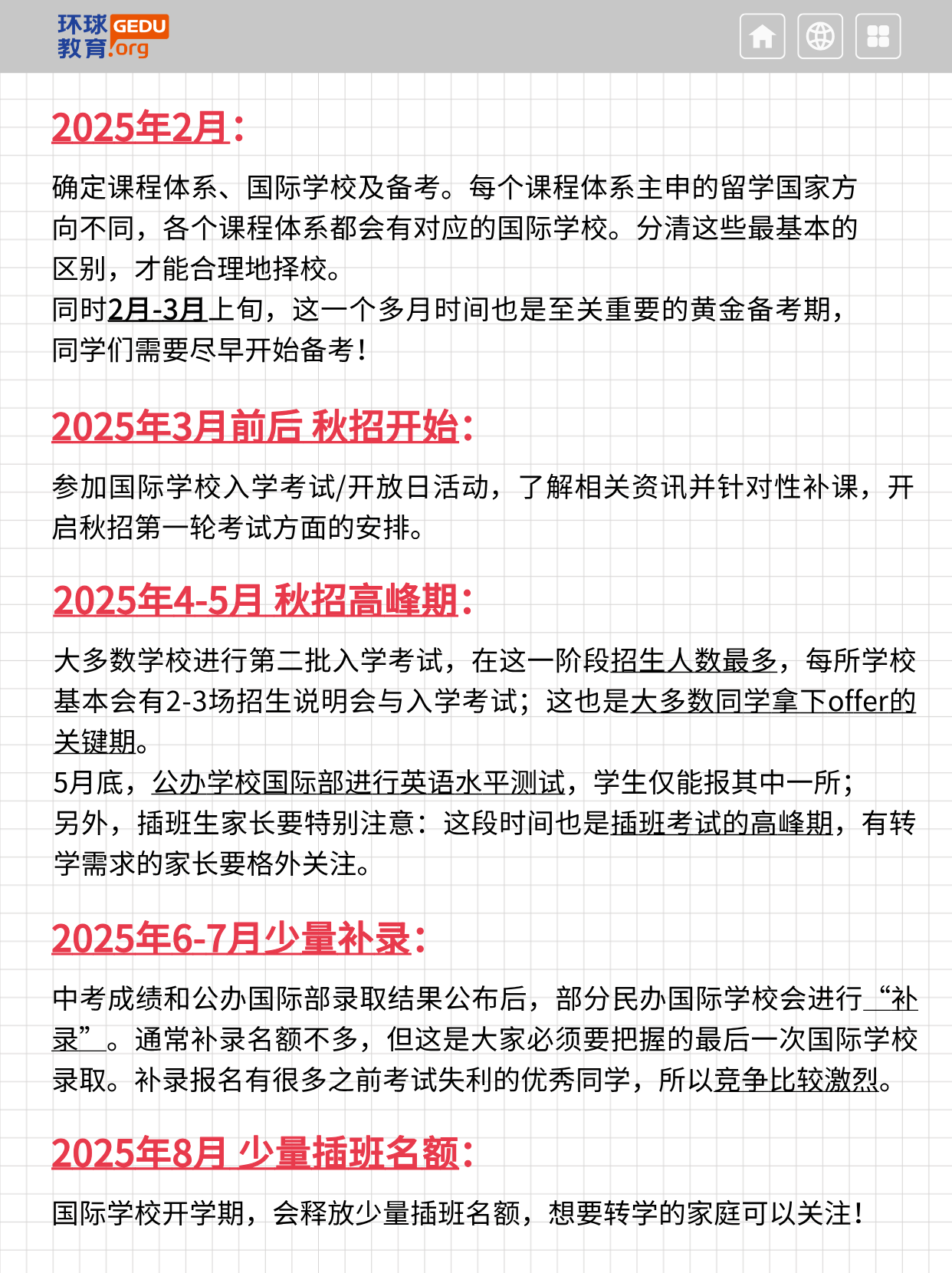 已经有国际学校2025年春季招生已经开始了,春季招生主要针对两类学生: