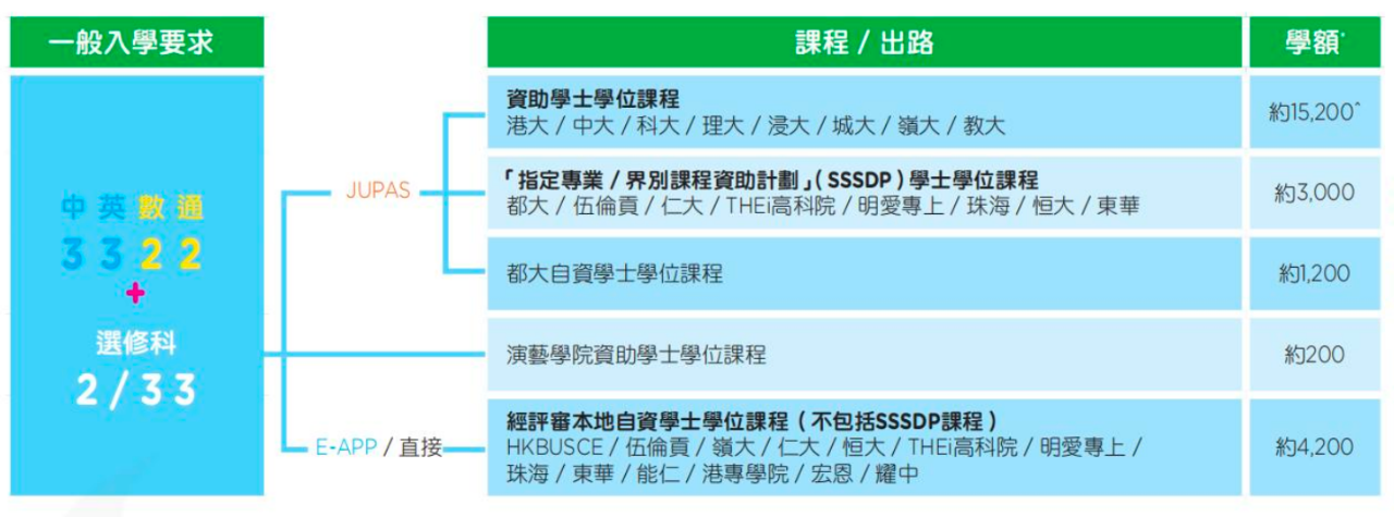 持有香港居民身份证或香港永久居民身份证的港籍学生,可以通过香港大学联招办法(JUPAS:Joint University Programmes Admissions System),使用DSE成绩报读香港的公立高校,享受香港院校80%的学位和公费资助入读(教资学位)的机会。