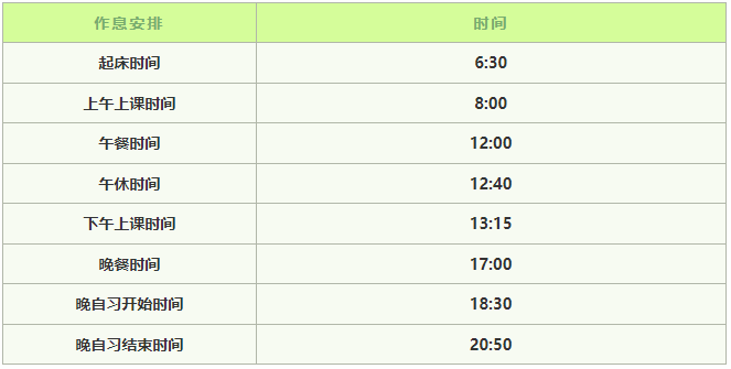 备注:学生休息周五下午17:00离校;周日下午17:00后返校。