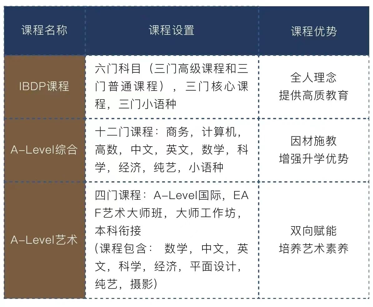 园外国际高中部开设IBDP课程、A-Level综合高中课程及A-Level艺术课程,给予学生多项路径选择。课程设置丰富完备,课程优势各具特色,贯彻全人理念,实现综合发展,培养具有终身学习和解决问题能力的人。