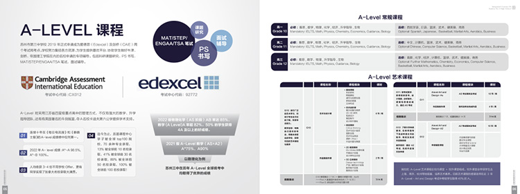 课程中心开设超7门A-Level课程供学生选择,课程的多样性在苏州同类型学校中名列前茅。