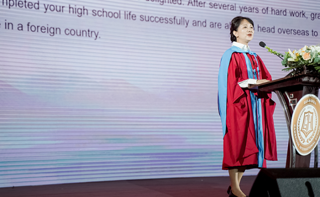 今天是你们高中毕业,长大成人,开始独立生活的一个标志性的日子。以前你们可能更多关注的是自身的学习和生活, 但作为一个受过良好教育的成人,从此刻起,你们需要开始关注这个世界,关注他人,关注我们的社会。以前你们的目标就是进一所自己理想的大学,今后你们的目标可能就会变得比较多元,可能是工作,可能生活,更可能是要应对由于社会发展,时代变迁,科技突破而带来的各种生存压力和工作挑战。