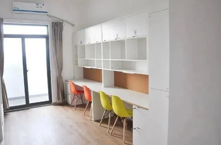 光华剑桥的宿舍还是不错的。整洁明亮,是经典的“上床下桌”模式,每个人都拥有一片垂直的小空间,上下床的楼梯还藏有很大的储物空间。