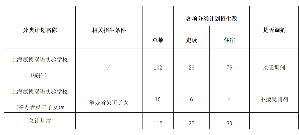 2. 分类计划及招生数:2024年学校招生计划数为112名,4个班级,班额数不超过28人。分类计划表如下: