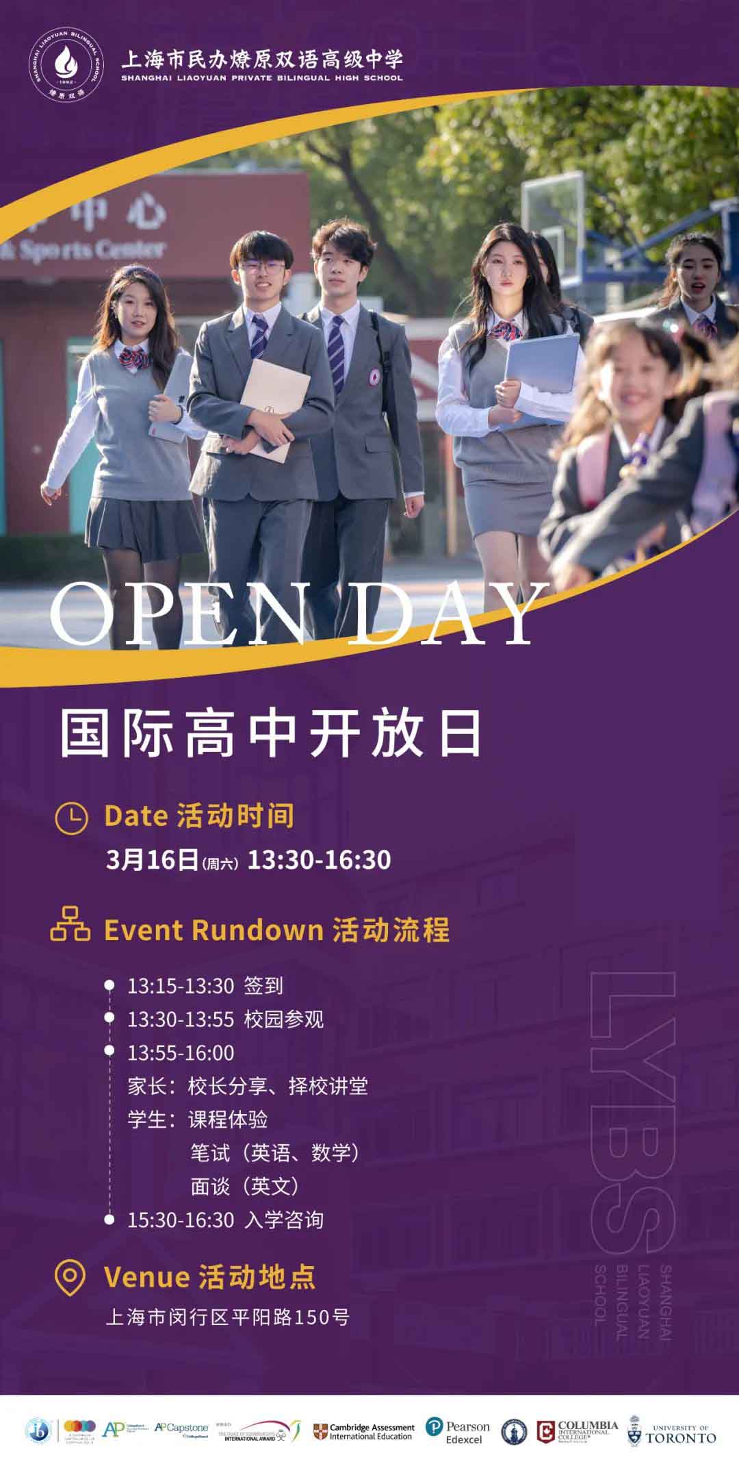 燎原双语(LYBS)始创于1992年,为6-18岁学生提供立足中国情怀、具有国际化视野的高品质教育。上海市民办燎原双语高级中学是一所全日制、可寄宿、开设国际课程的民办高中,开办于