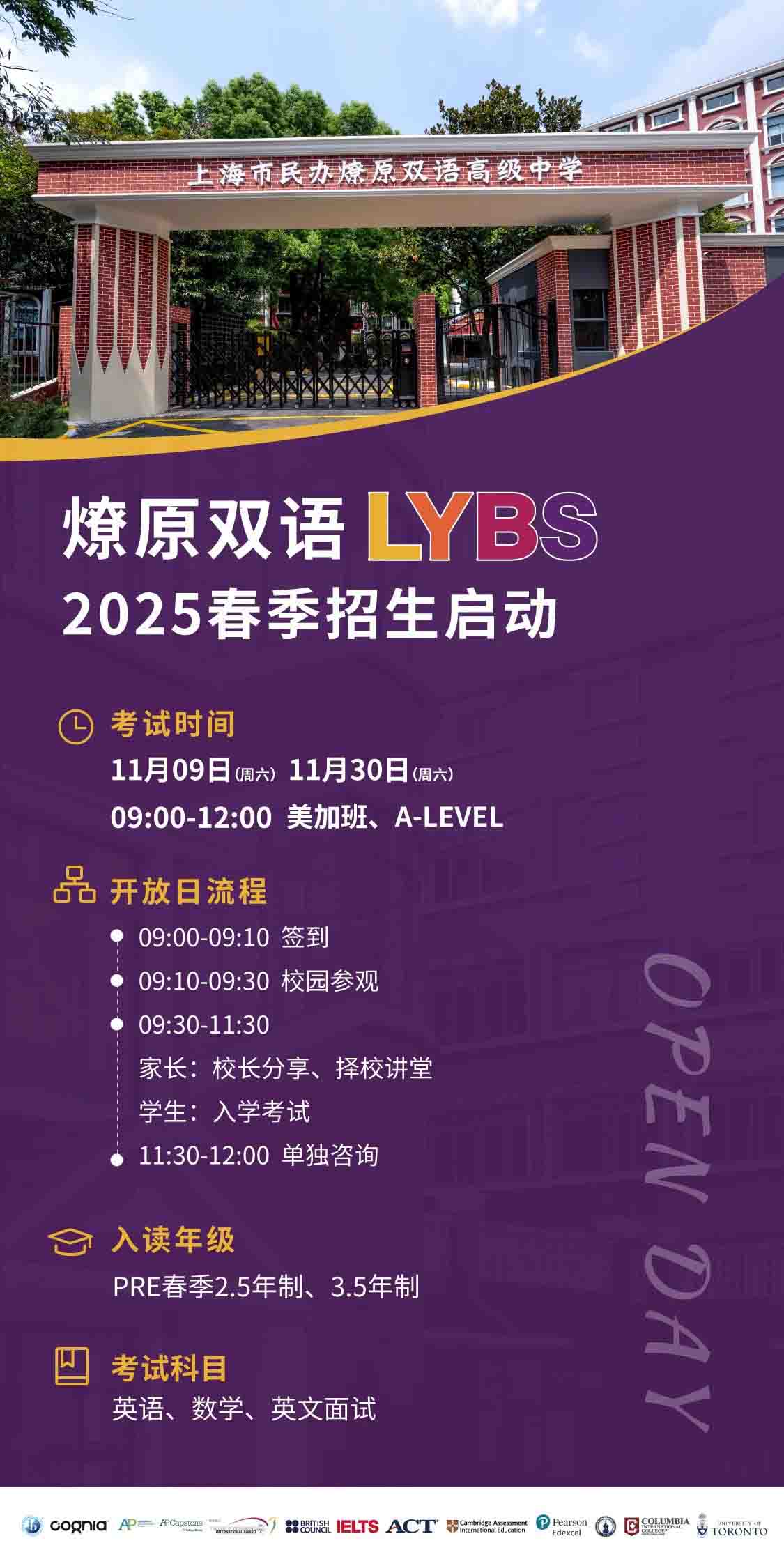 燎原双语(LYBS)始创于1992年,为6-18岁学生提供立足中国情怀、具有国际化视野的高品质教育。上海市民办燎原双语高级中学是一所全日制、可寄宿、开设国际课程的民办高中,开办于