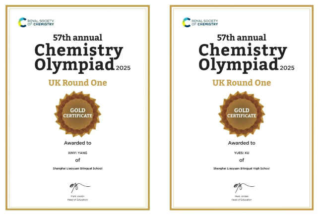 恭喜我校燎原高中国际课程班的Margaret与Asteria两位同学斩获UKCHO化学竞赛全球金奖!