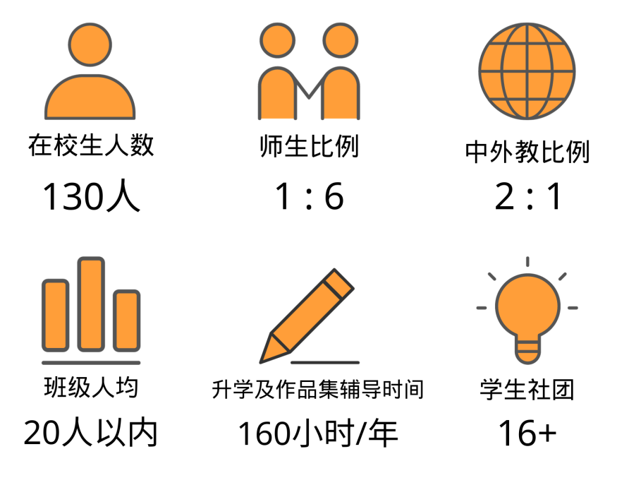 * 三年课程中全面覆盖了「生活教育/体育」和「作品集及升学辅导」,关注学生的品格塑造,辅助学生应对未来的挑战。