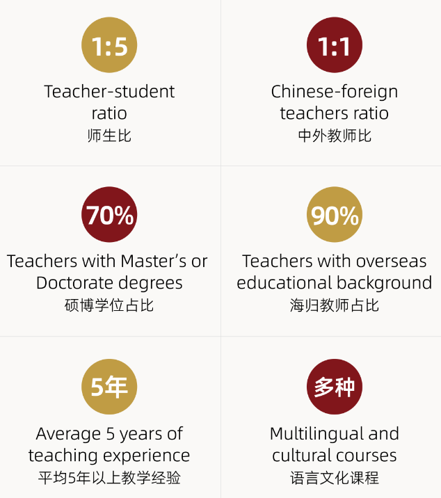 SIPC拥有一支高质量的师资团队,中外教师比例1:1,70%的教师拥有硕士及以上学位,平均5年以上教学经验,且教师背景多样化、视野全球化,可以帮助学生塑造创新思维和国际视野。