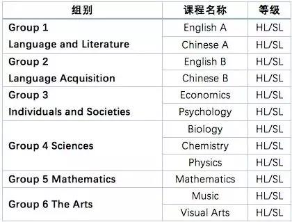 学校开设的课程有:语言和文学(英语、中文)、语言习得(英语、中文、法语)、个人和社会、科学、数学、艺术(音乐、视觉艺术)、身体和健康教育、设计。