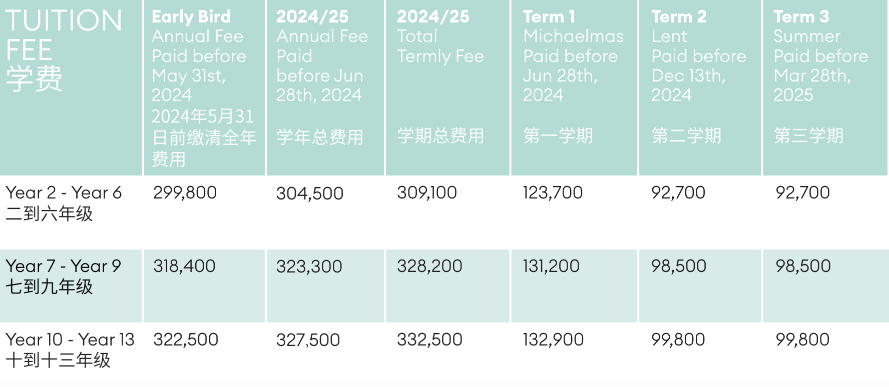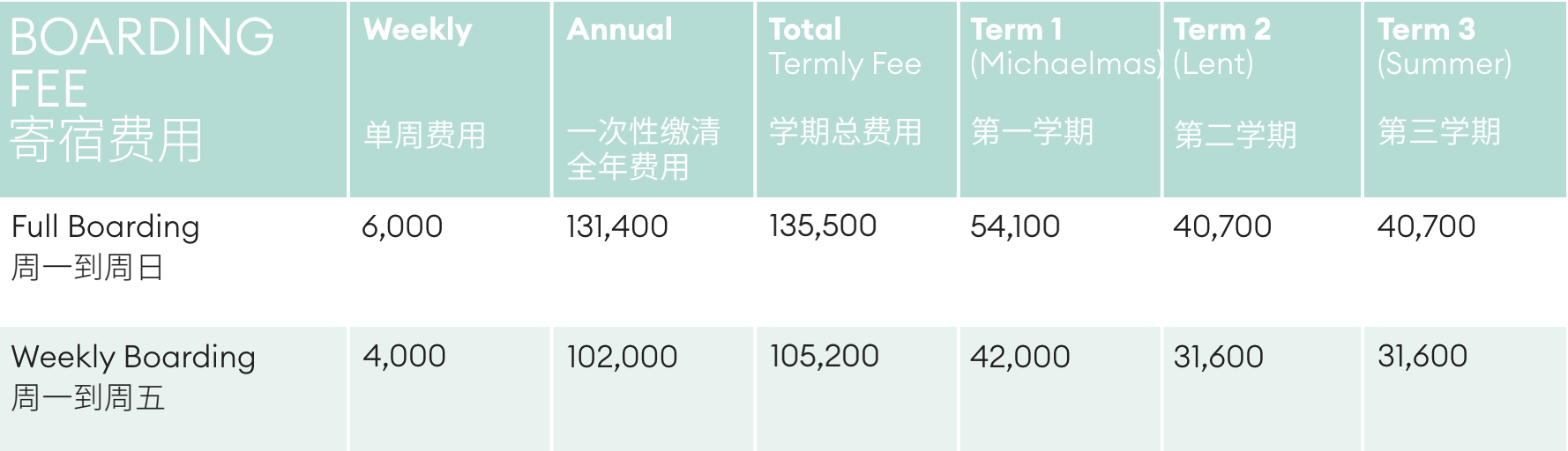 学年中申请入学的学生的学费将会按日计算,不管是家长/监护人还是他们的雇主支付学费,家长/监护人都有责任按照收费标准支付学费,学生离校前必须付清一切费用。
