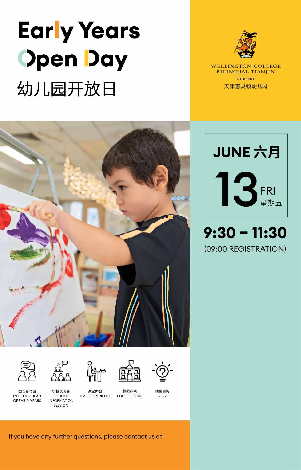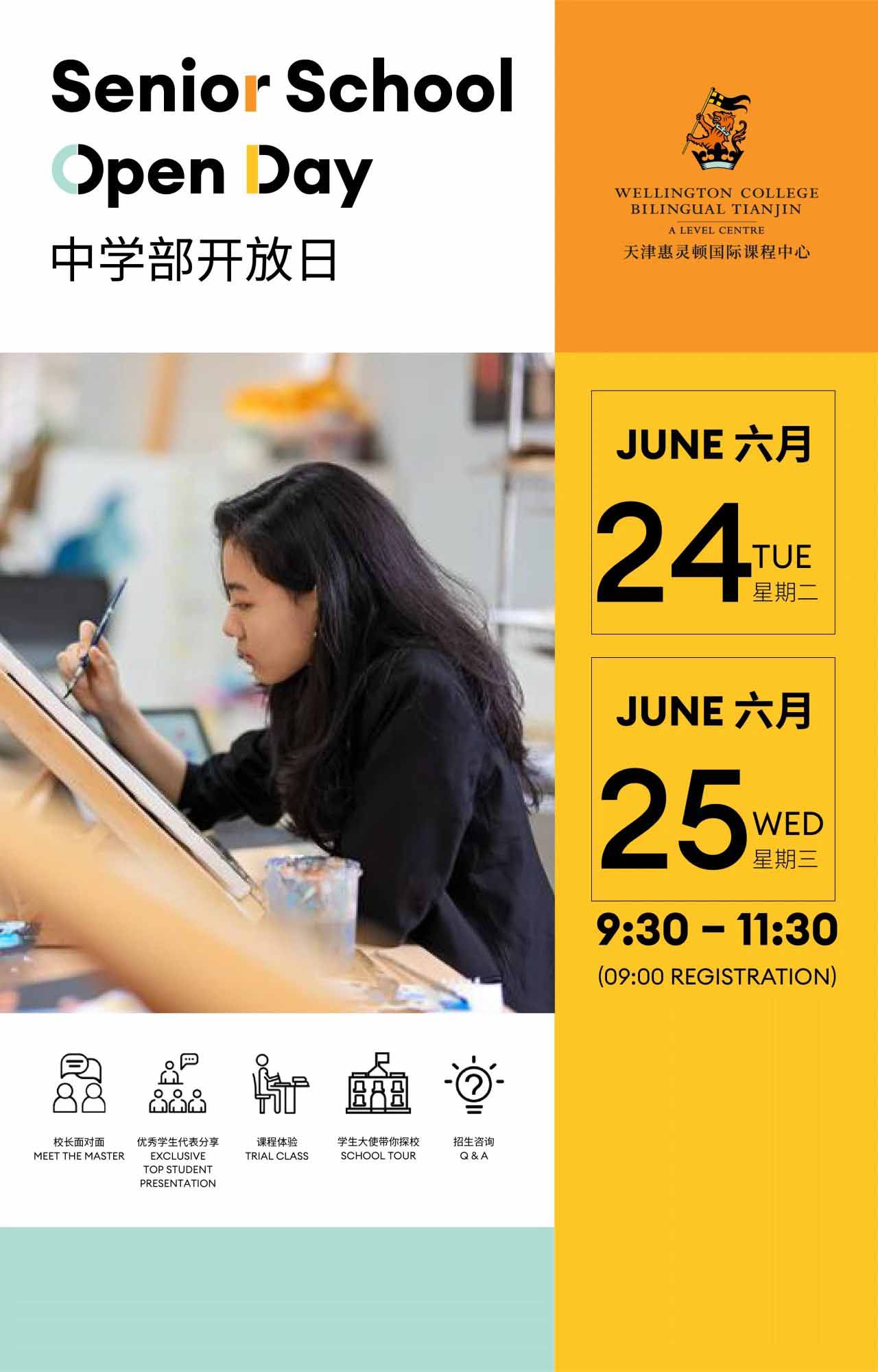 六月,我们将继续为您呈现覆盖幼儿园、小学部和中学部的全学段校园开放日活动,面向本学年或2025-26学年及之后入学的学生和家长。通过校园开放日,您将有机会深入了解惠灵顿的全面课程体系、丰硕的教学成果和先进的教育理念。您将得到来自学部校长/园长以及招生团队的专业指导和解答,他们将针对家长和孩子们关心的问题提供个性化的咨询服务。