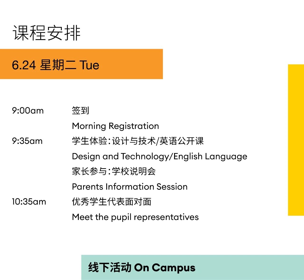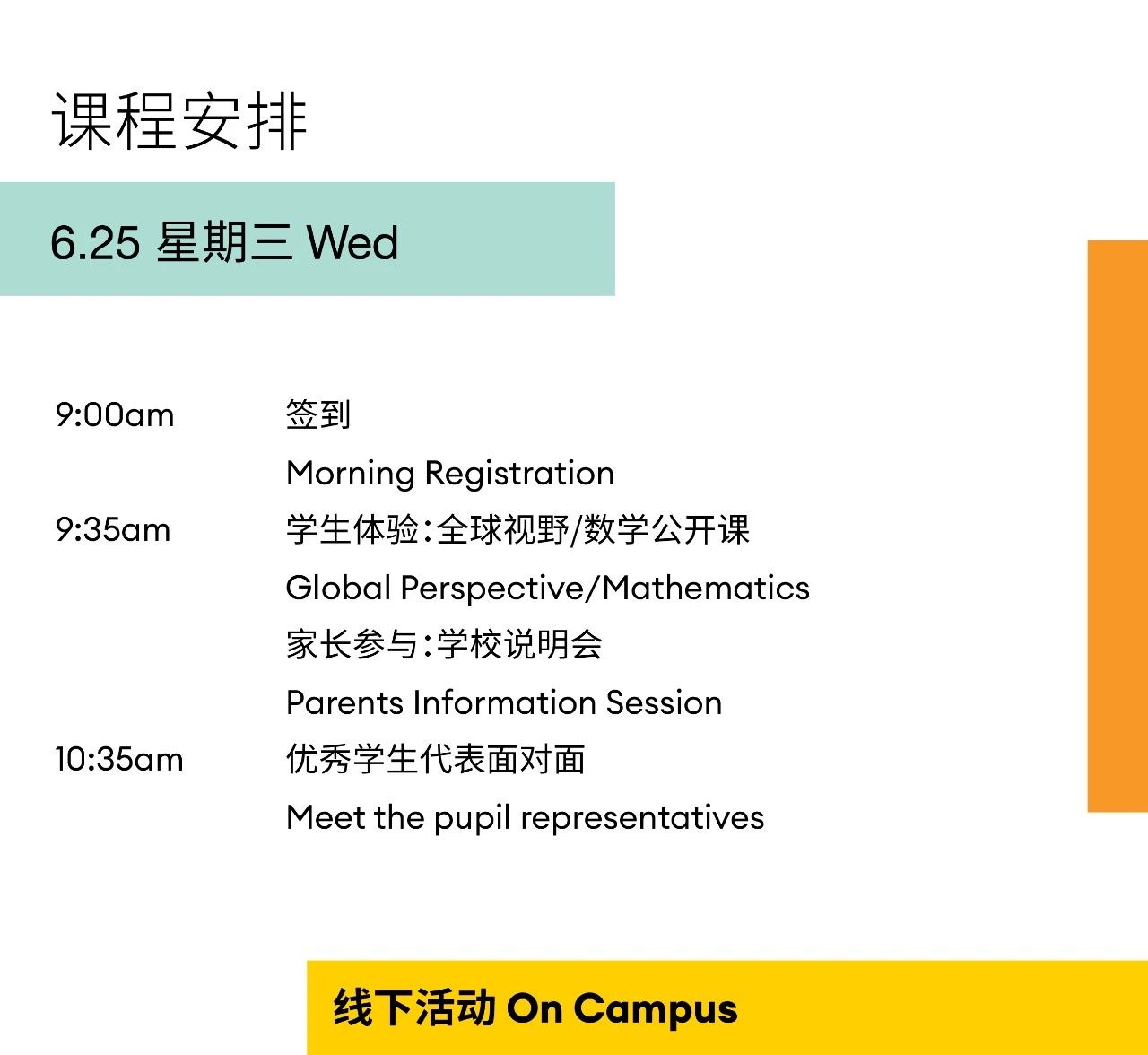 五月,我们将继续为您呈现覆盖「幼儿园」、「小学部」和「中学部」的全学段校园开放日活动,面向本学年或2025-26学年及之后入学的学生和家长。通过校园开放日,您将有机会:✅ 深入