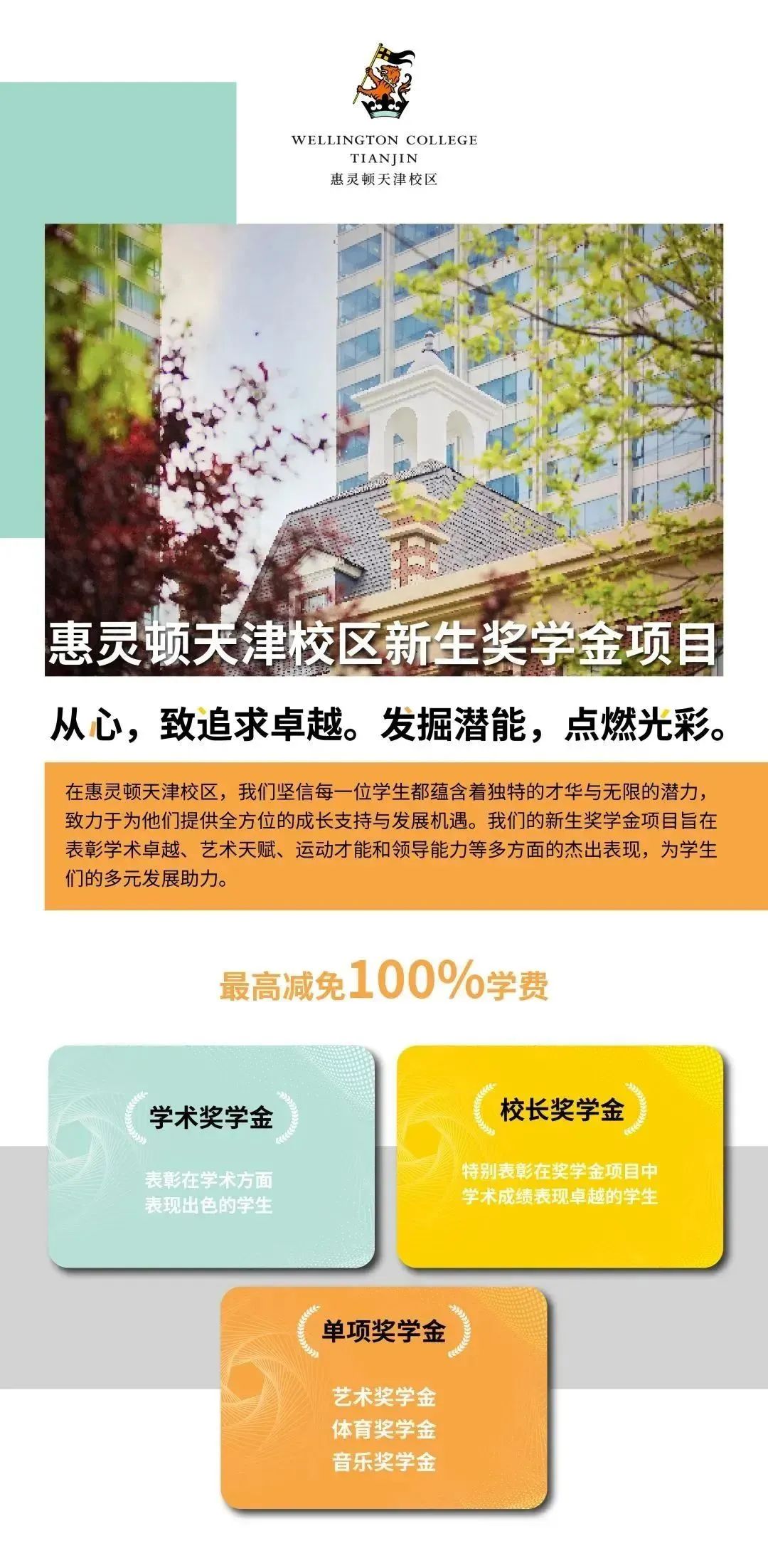 教育是成功的基石,它开启了通往充满无限机遇与可能性的世界之门。惠灵顿天津校区的新生奖学金项目专注于培育最杰出的学子,助力他们探知并释放潜力。我们坚信,每位学生都拥有待发掘的独特才能。我们的奖学金项目不仅提供经济支持,更是一条通往学术成就、个人发展和未来辉煌的精彩之路,让我们携手培育惠灵顿学子们成长为“笃学、互通、善新”的人才。