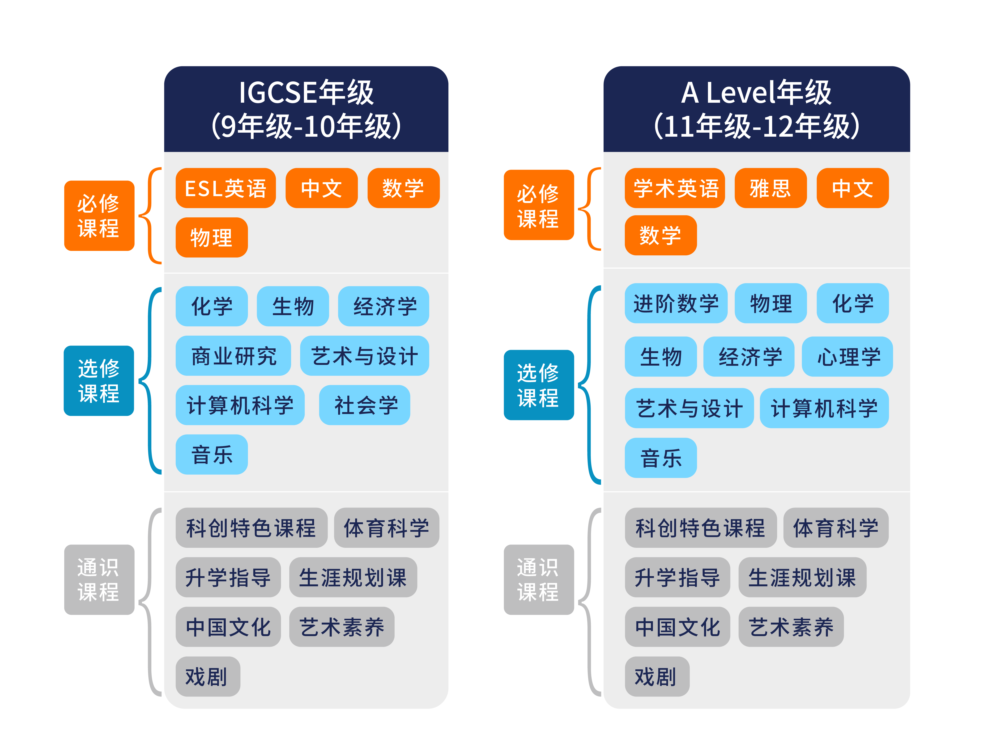 光谷康桥高级中学在国内高中学业水平考试的规范要求下,配套英式A Level与美高课程两大国际学术课程体系。英式高中A level课程提供理、工、文、商、艺术、心理各方向20余门课程选择与学习;美式高中的6大学部提供语言与文学、数学、自然科学与技术、社会科学、艺术、体育与运动方向的几十门课程选择与学习。
