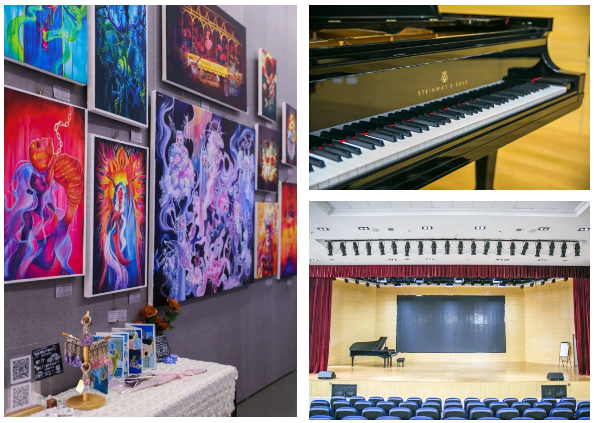 多功能报告厅、大礼堂和艺术展厅,为学生展示人文艺术风采提供舞台。