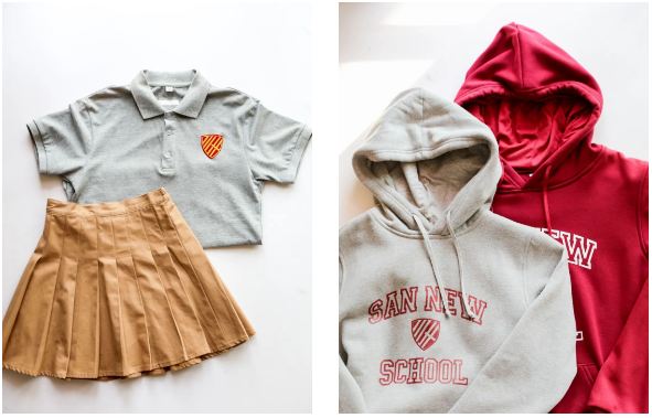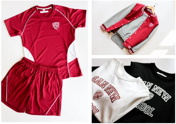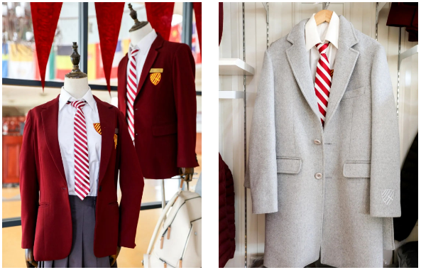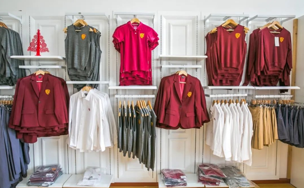 教学楼2楼大厅设有校服商店,为学生提供多款正装、休闲装与运动装,供学生在不同季节和不同场合穿着。