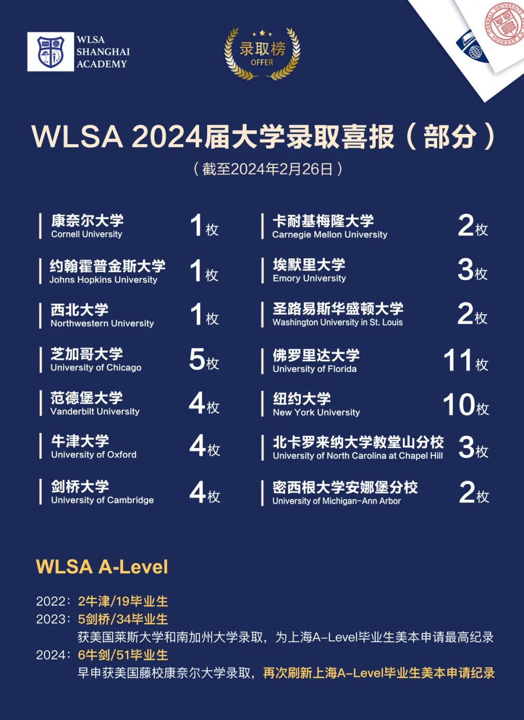 近日,WLSA上海初中部官宣了26年的开放日安排,高中部招考时间也进入倒计时发布阶段,今年打算入学WLSA的同学,现在就可以准备起来了!01、WLSA上海2026春招安排目前,WLSA初中部2025-