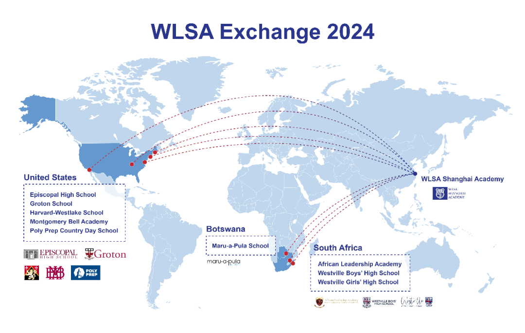 2024年2月,WLSA交换项目在疫情之后首次恢复。在这次交换活动中,来自WLSA Shanghai Academy的36名师生分别前往美国、南非和博茨瓦纳的九所学校,展开了为期两周半的文化探索之旅。