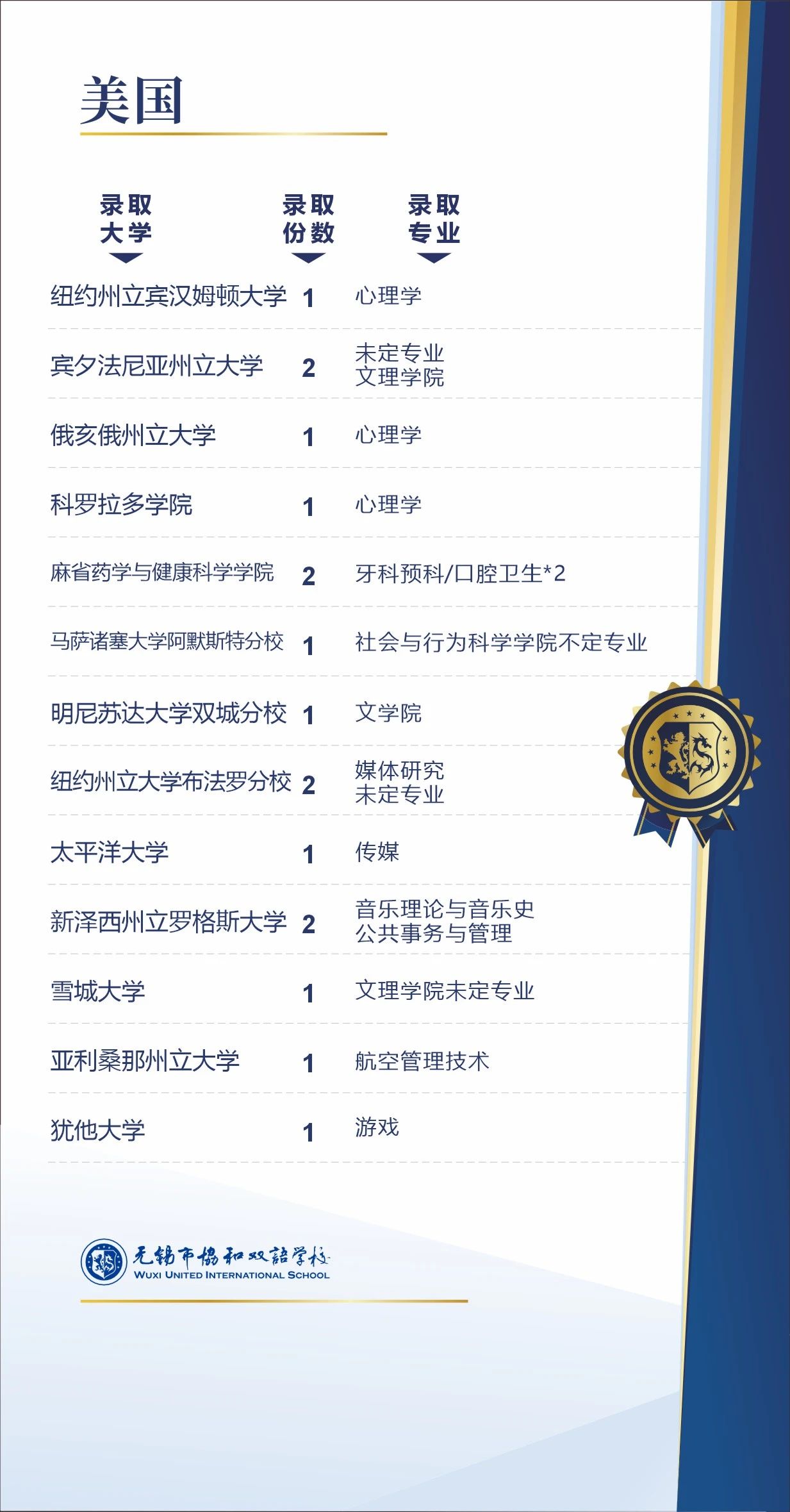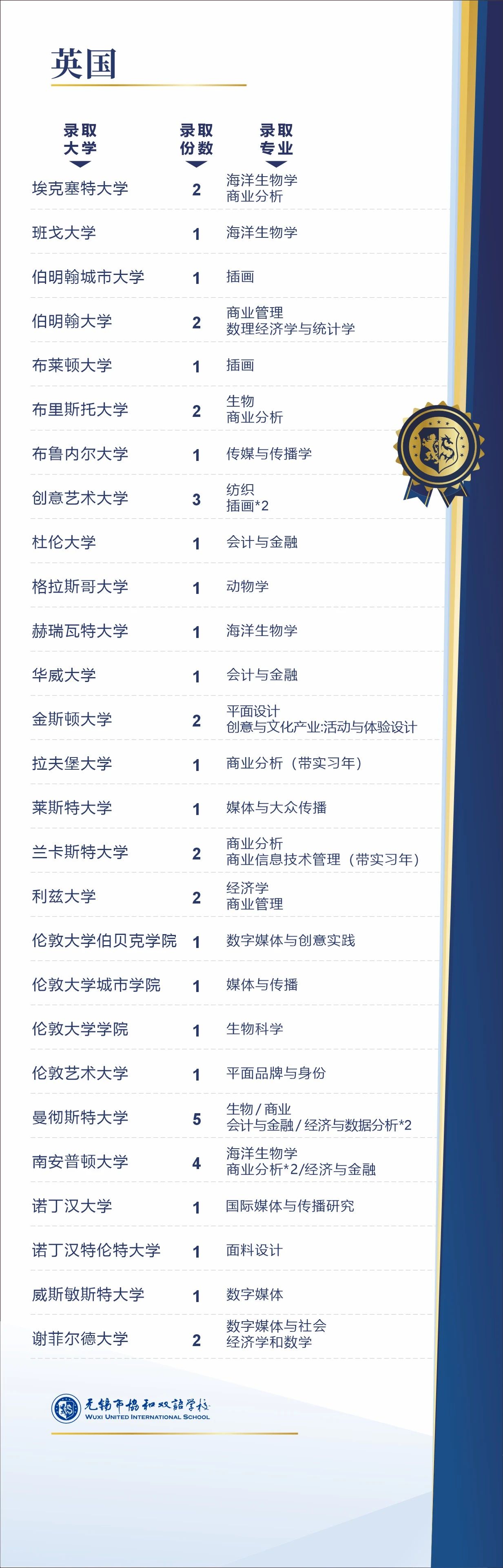 无锡协和IBDP 2024届部分录取截止到3/29(按首字母排序,排名不分先后)