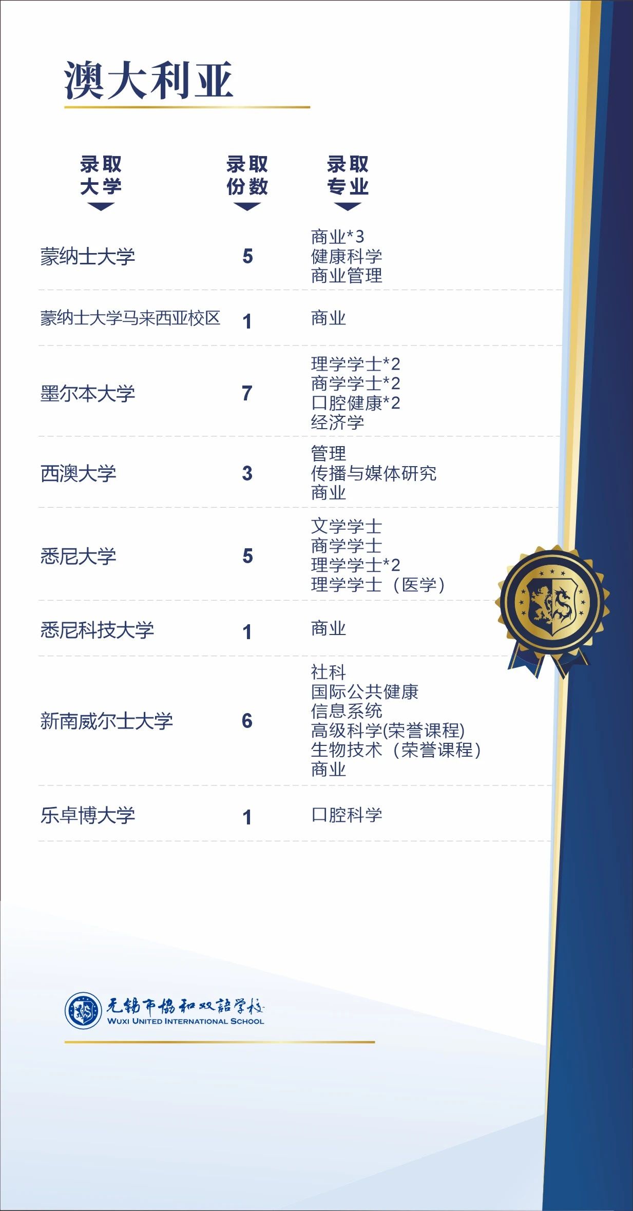 截至目前,无锡市协和双语学校2024届IBDP毕业生共收获158封全球一流大学的录取通知书。其中63%的学生收获世界前30的大学录取,80%的学生收获世界前50的大学录取,92%的学生收获世