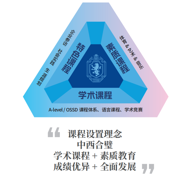 西安博爱学校国际部学校开设了适合中国学生的英国A-Level课程和加拿大安大略省OSSD高中课程。以“中西合璧”作为课程设置理念,双学籍双保险。完整的学术课程,让学生拥有坚实