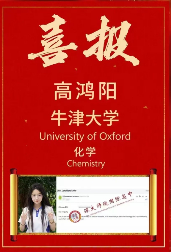 2024年1月9日,备受瞩目的牛津大学录取放榜!恭喜云海谷书院AISSU(YHV)高鸿阳同学获得牛津大学预录取通知书!