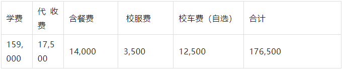 2. 餐费 14,000 元/学年,其中:早餐 3,000 元/学年,午餐 8,000 元/学年,晚餐 3,000 元/学年;