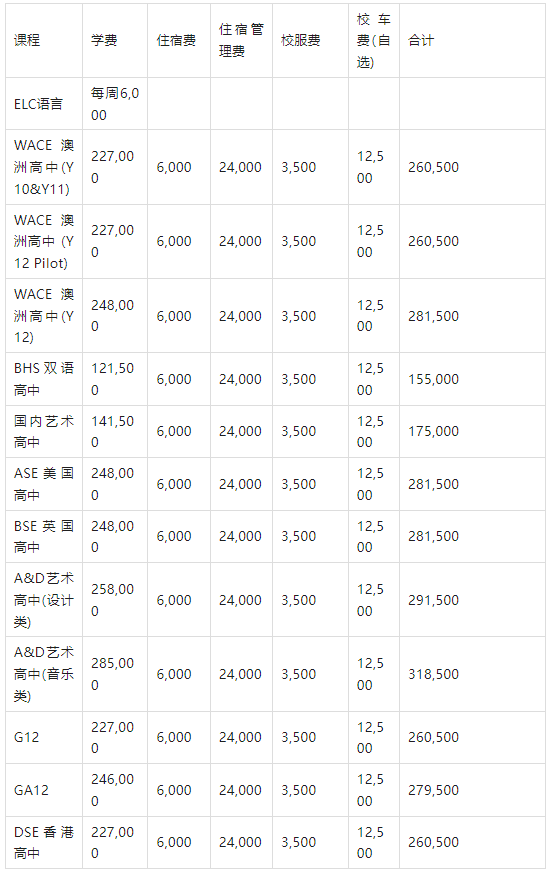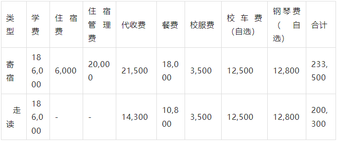 3. 住宿费和住宿管理费仅适用于周一至周五寄宿的学生,周末寄宿的常住生需按 11,200 元/学年缴纳常住生管理费;