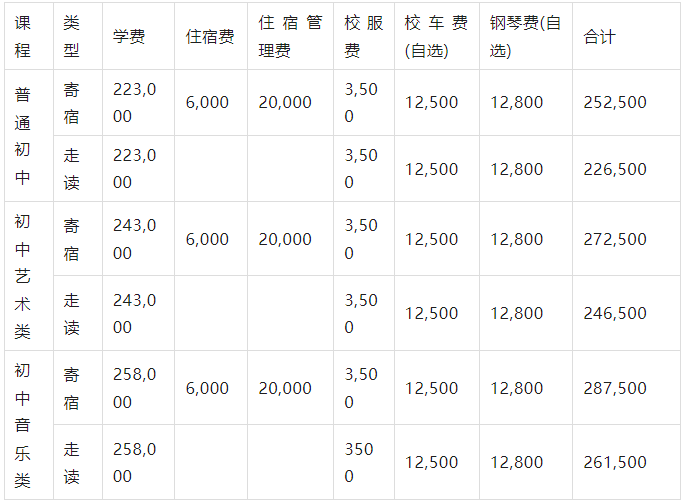 学费 15,000 元/月,餐费:1,300 元/月,班车:1,200 元/月;