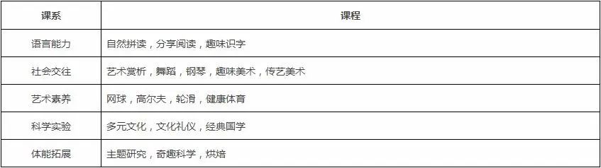 1.艺术启蒙与科技创新。课程涵盖京剧表演、声乐、声乐表演、钢琴、舞蹈、书法、国画、素描、创意美术、计算机、电脑绘画、STEM、Coding、VEX IQ