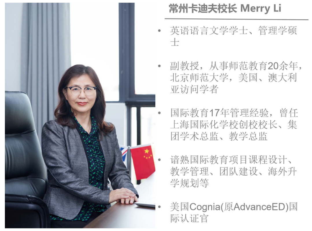 常州卡迪夫教师团队由李红校长(Merry Li)带领,在校教学老师共32人,师生比例1:3;硕士及博士研究生学历教师比例达62%;79%在校老师有海外留学经历和国际教育经验,谙熟国际教育体系;外教老师来自英国、美国、乌克兰等国家,国际教学经验丰富,为学生提供沉浸式纯英文交流体验,并为他们提升英语口语及掌握地道表达提供支持。