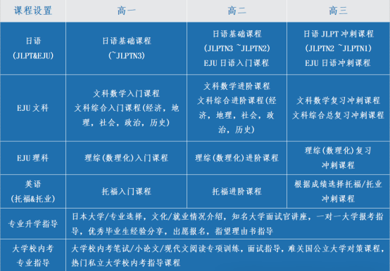 课程方面则是系统性开设EJU全课程,涵盖日语、托福、文科数学、理科数学、物理、化学、社会、政治、历史、地理、经济等。