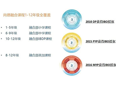 上海尚德国际高中2010年4月7日DP获得授权,成为IB World School。2012年DP迎来第一届毕业生,2014年成为上海市21所国际课程试点学校之一,2015年DP项目通过IB五年复审。课程特色