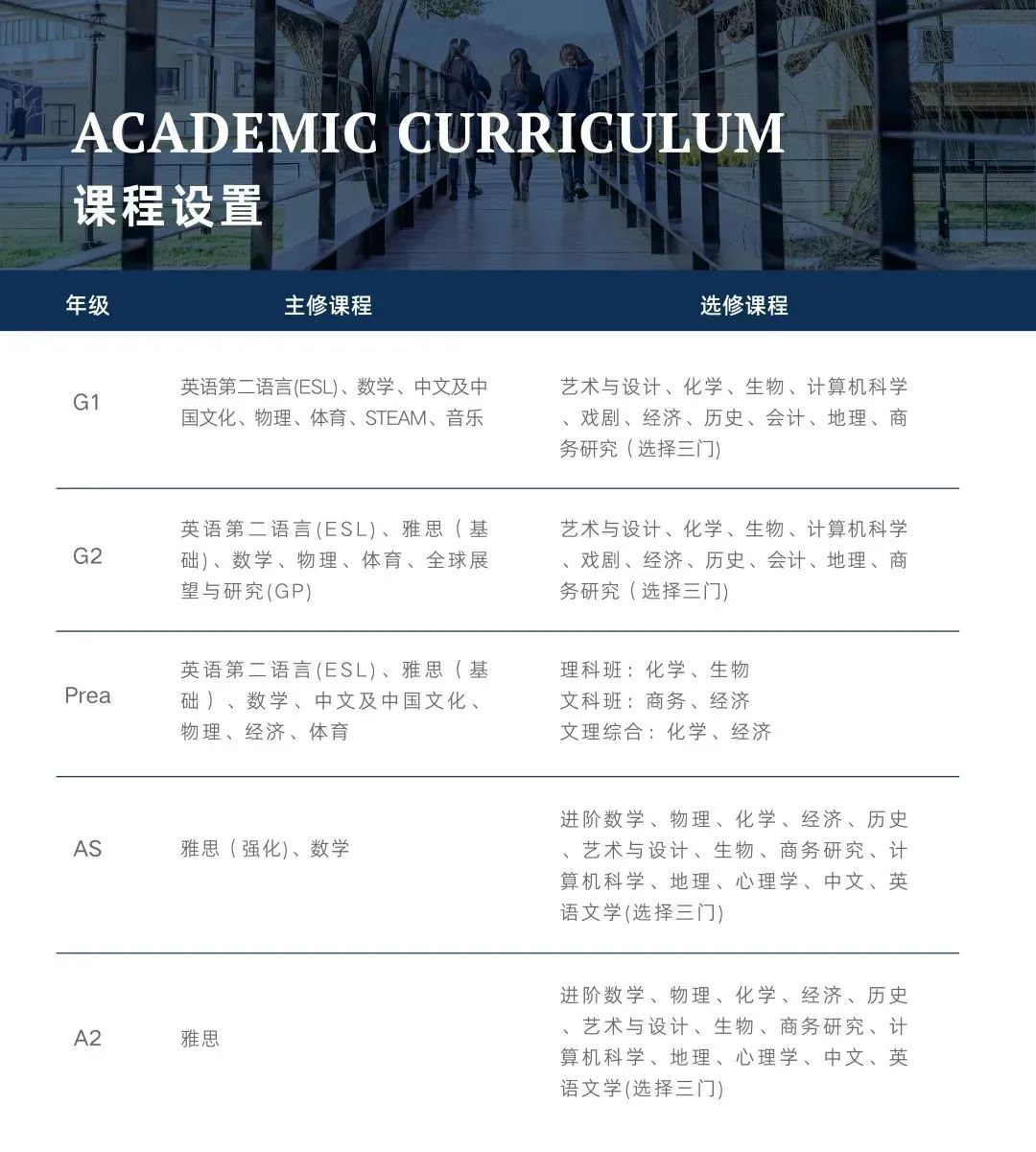 在学术课程板块,学校开设IGCSE&A-Level 共计30门课程,是目前国内开设IGCSE&A-Level课程最多的A-Level 学校之一,可以最大化满足学生专业选择;