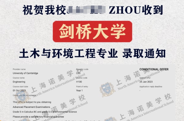 恭喜2023届上海诺美学校Zheng同学、Zhou同学、Zhang同学均收到剑桥大学(QS世界大学排名2)录取通知!