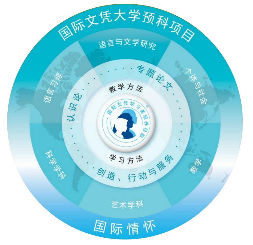 IBDP课程包含六个学科组和三门核心课程。六个学科组提供的课程包括中文语言与文学、中文文学、英语、经济、地理、历史、哲学、物理、化学、环境系统与社会、数学、视觉艺术、戏剧等。三门核心课程为知识论、拓展论文和CAS,知识论和拓展论文评分为A-E。