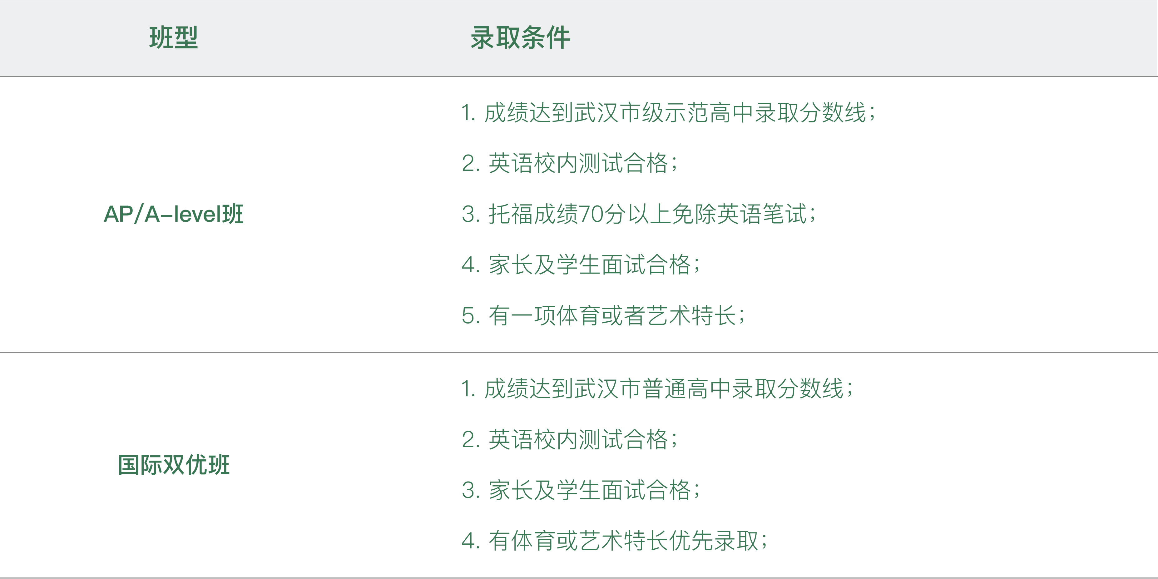 高中中美“双语”国际课程设置,旨在帮助准备前往美、英、加、澳等英语国家就读大学本科的学生,打好坚实的文化课基础和语言基础,从多方面培养学生的学习能力和初步适应国外生活的能力。学生在学习美国高中课程的同时,坚持学习中国高中基础课程,因而国际班的毕业生既具备中国学生应有的、扎实的数理化基础优势,坚实的中国历史文化底蕴,又具备申请国外大学所要具备的语言要求和适应国外大学的学习方法和能力,成功地被国外一流大学录取。